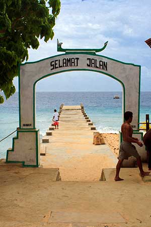 Pulau Ay is a charming place accented by bright pastel colors and smiling people. There are still active nutmeg plantations on the island and the remains of ancient Fort Revenge (1616) along with old colonial plantation mansions one of which is still occupied by descendants of the original Dutch perkeneer family that first came to these islands in 1585. The real attraction of Ay is the sandy beaches and spectacular snorkeling or diving on the pristine coral reefs especially the drop offs that plunge thousands of meters straight down with visibility as clear as the air. This is where some of the islands finest wild pearls are found by local divers still using traditional methods without modern equipment. These pearls are highly valued by collectors the world over.